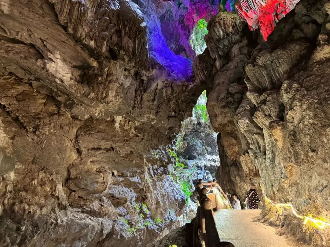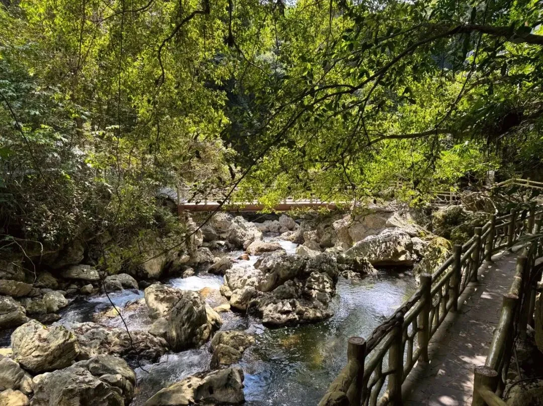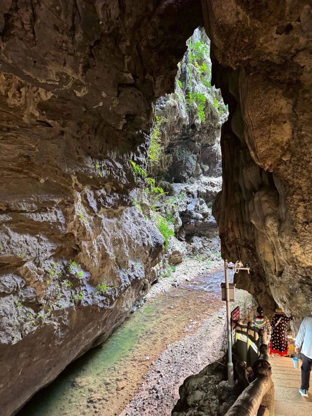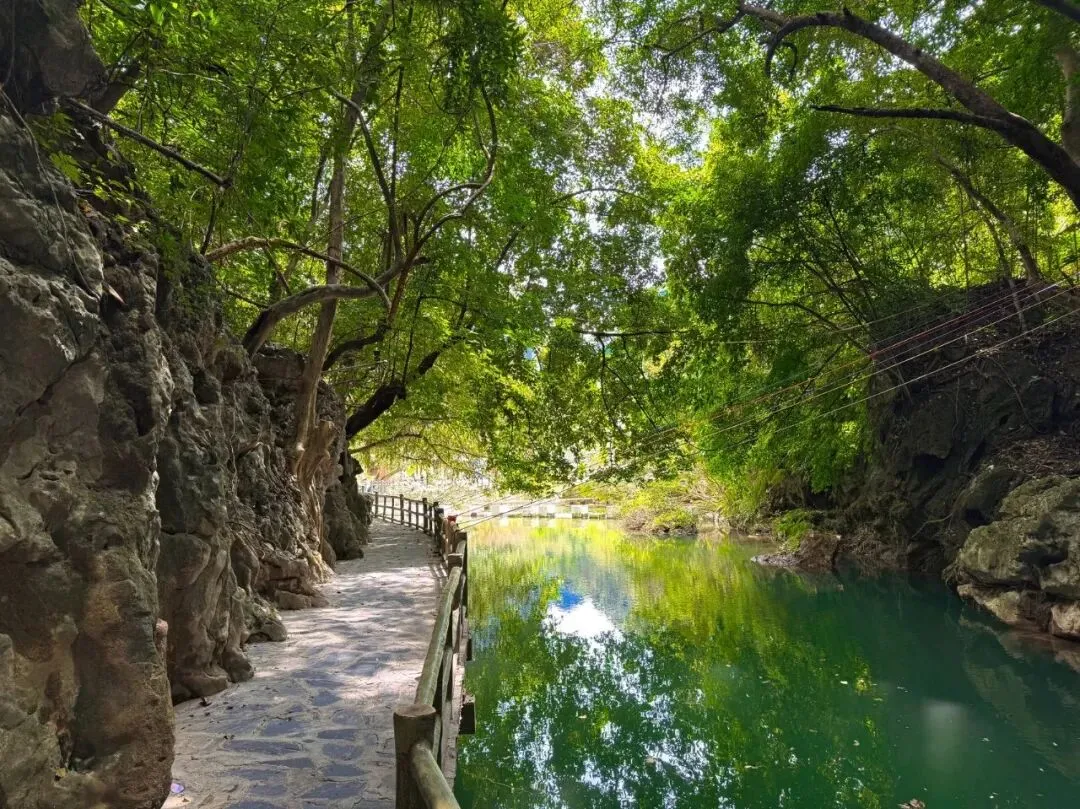 漂流分经典漂和自由漂两种,核心区别就是船工划桨还是自己动手,前者省心省力,后者更具趣味。除了漂流,徒步路线也设计得十分合理,木质栈道穿梭在原始雨林中,国家二级保护植物桫椤随处可见,负氧离子爆棚,全程不走回头路。沉浸式感受峡谷风光,带家人朋友来这里,既能玩水又能认识自然,孩子玩到不想走。沿着溶洞内步道缓缓前行,看水滴从钟乳石上坠落,听暗河水流叮咚,仿佛时间都在此刻慢了下来。