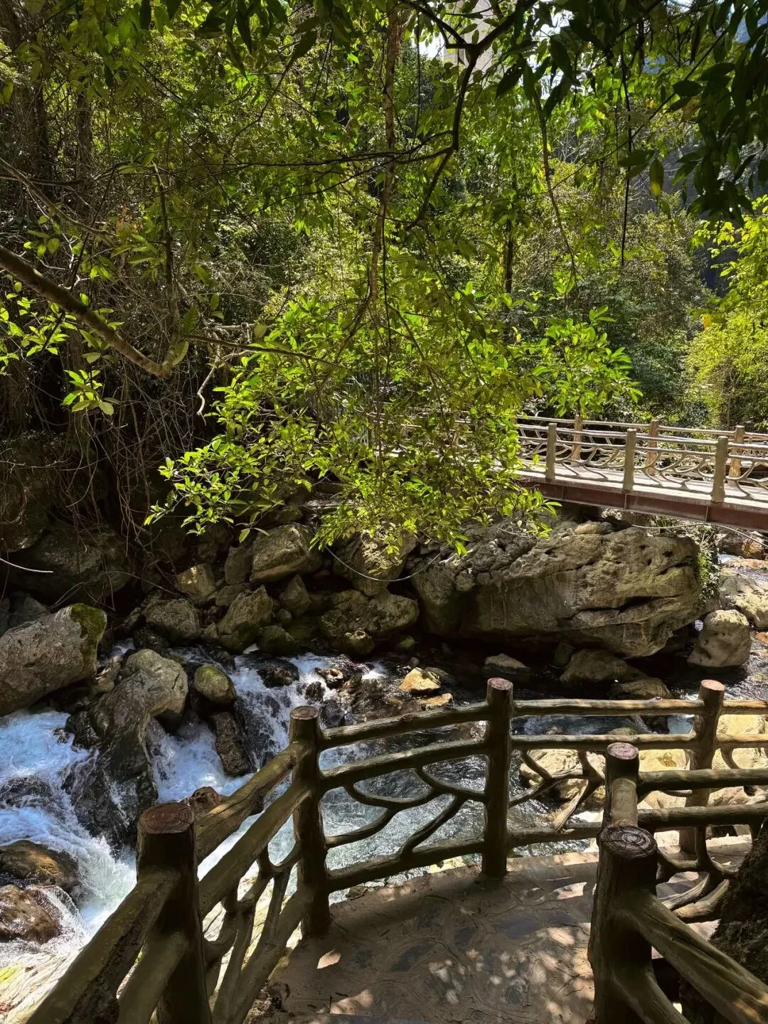 途中会经过几处溪涧,水流清澈见底,点缀在翠绿的丛林中,随手一拍都是“绿野仙踪”既视感。
