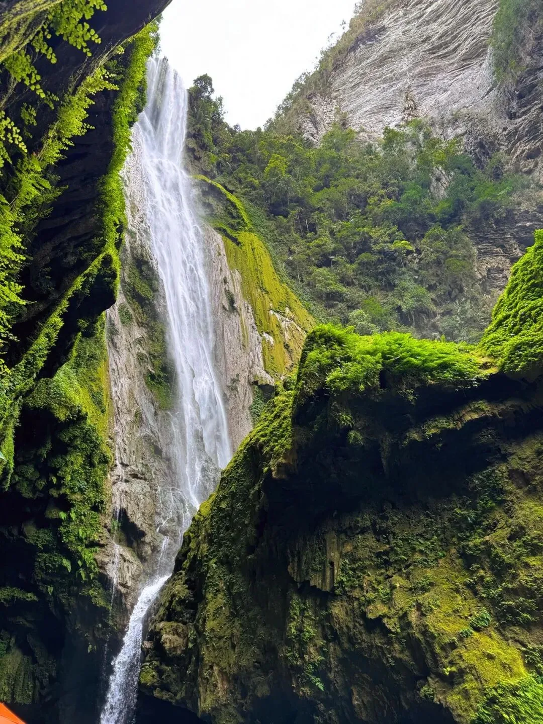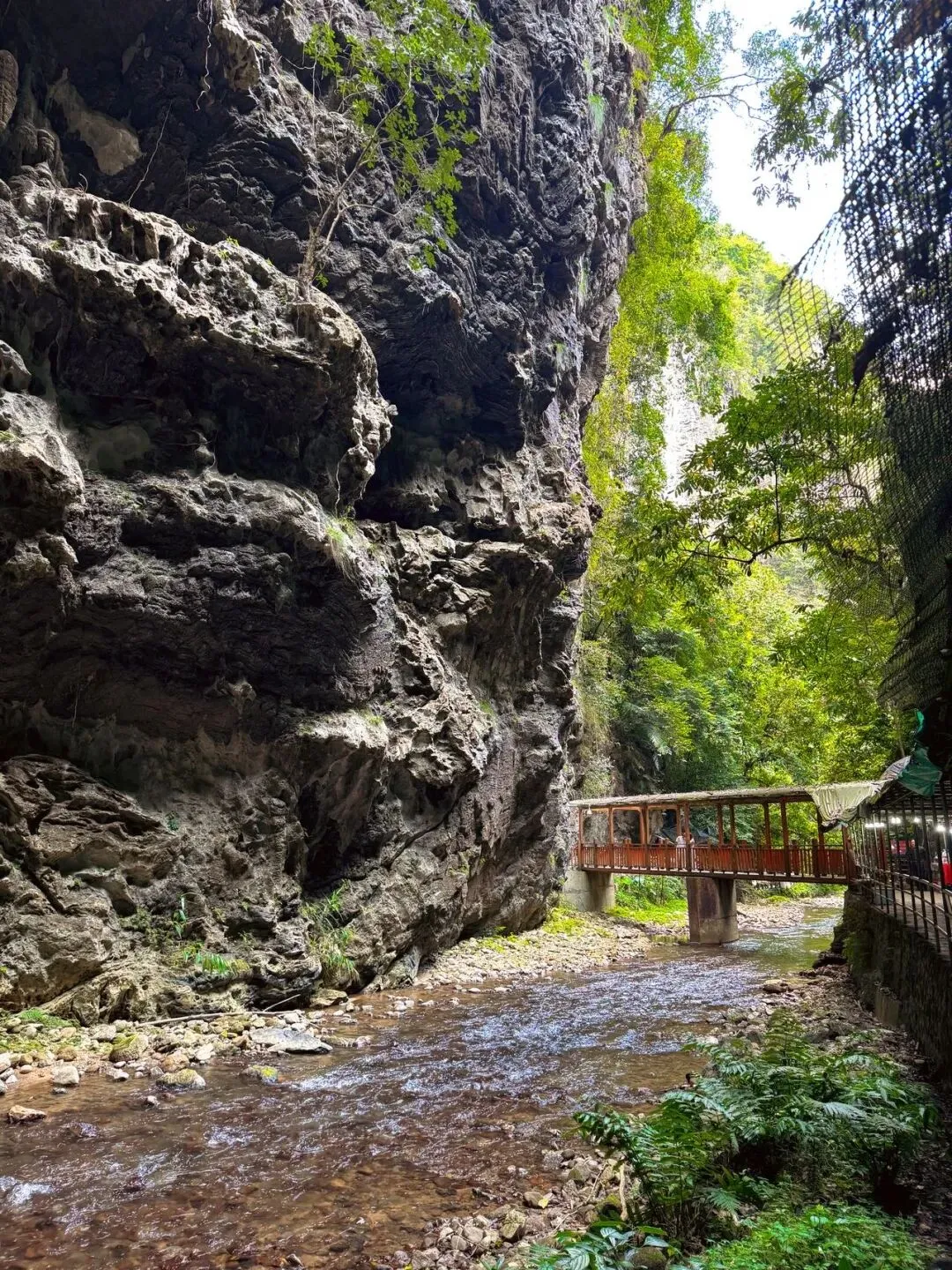 如果说古龙山大峡谷的关键词是“漂流+溶洞”,那通灵大峡谷的核心体验便是“徒步+瀑布”。