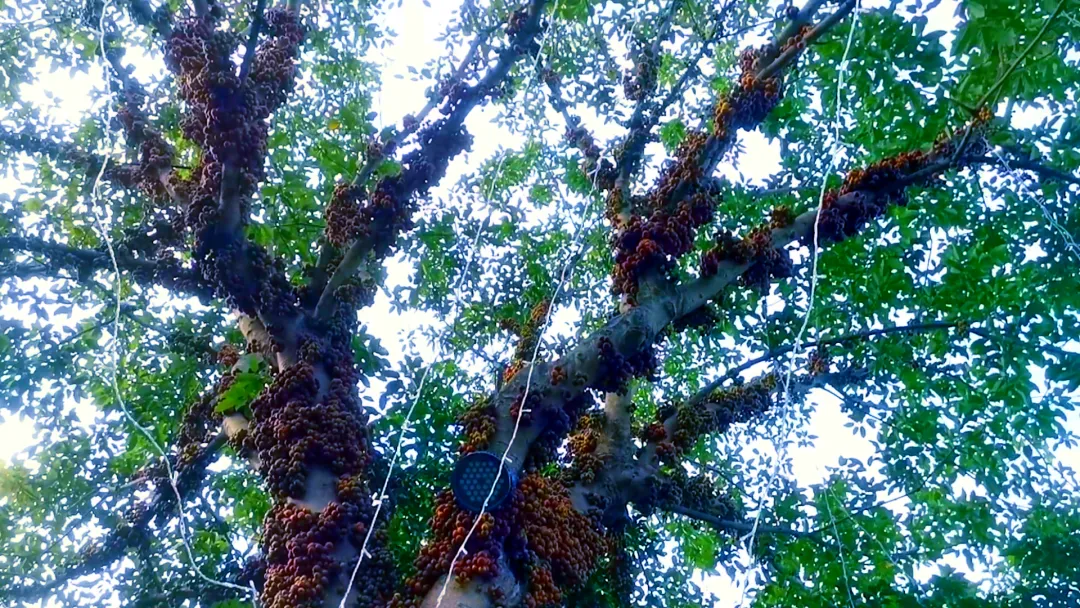 从阑园出来,顺着步道继续往前走,一路上还有一些珍奇的树,搭配着树上的鸟鸣与风吹树叶的“沙沙”声,格外惬意。阳光顺着叶脉慢慢滑落,折射出细碎的光。