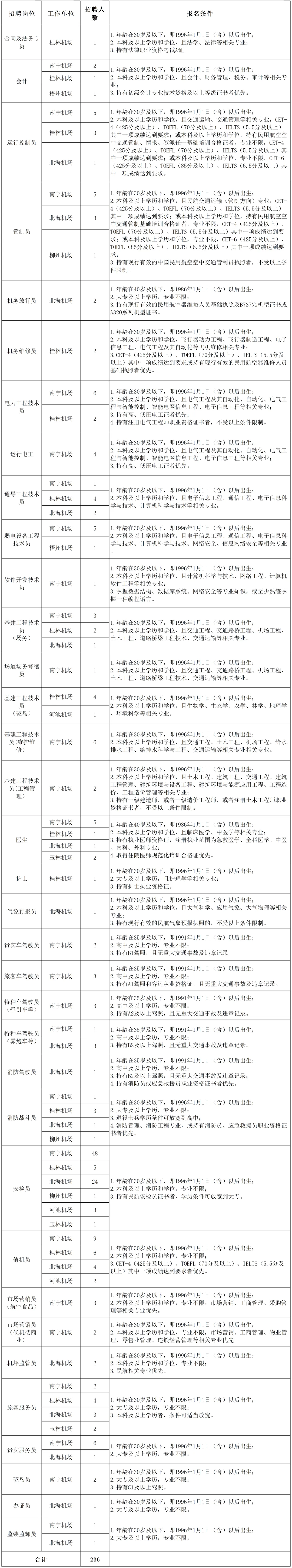 6.身心健康,无传染病或重大疾病,具备岗位要求的身体条件。入职前参照《公务员录用体检通用标准(试行)》进行体检,民航特有专业岗位的人员录用还需符合民航行业相关专业身体检查的标准。