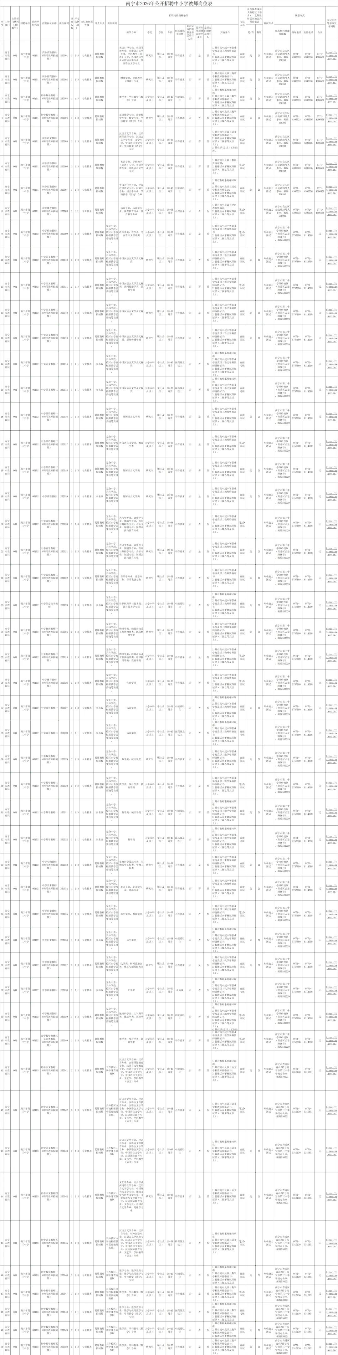 结合南宁市近年来中小学教师招聘工作实际,本次招聘中相应学科教师岗位除了岗位表规定的专业可以报考,该学科对应的教育学类专业〔例如物理教师岗位,对应的学科教学(物理)专业或物理教育专业〕且符合岗位要求的人员也可报考。