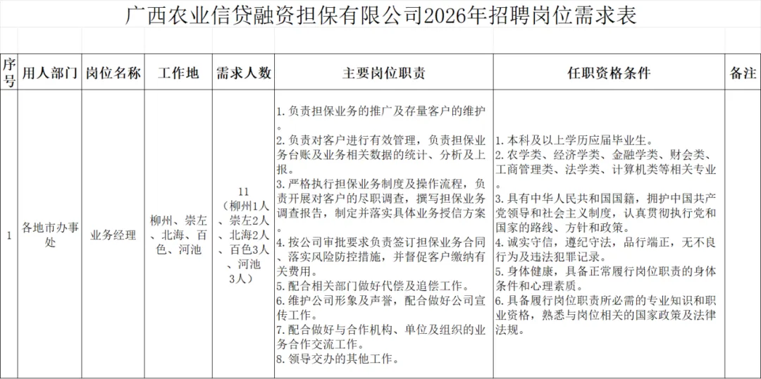 办事处业务经理11人(其中:柳州1人、崇左2人、北海2人、百色3人、河池3人)。