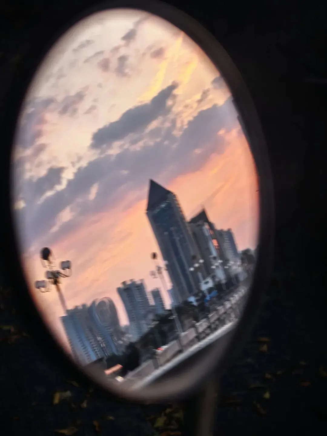 - 焦点控制:对焦远处的晚霞或建筑,让前景虚化形成“暗边框”,增强画面纵深感;