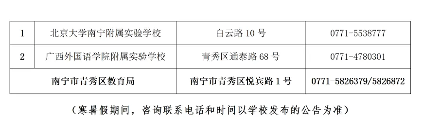 2.《居住证》(父母双方或其他法定监护人所持并由青秀区各派出所核发,登记地址在青秀辖区范围内);