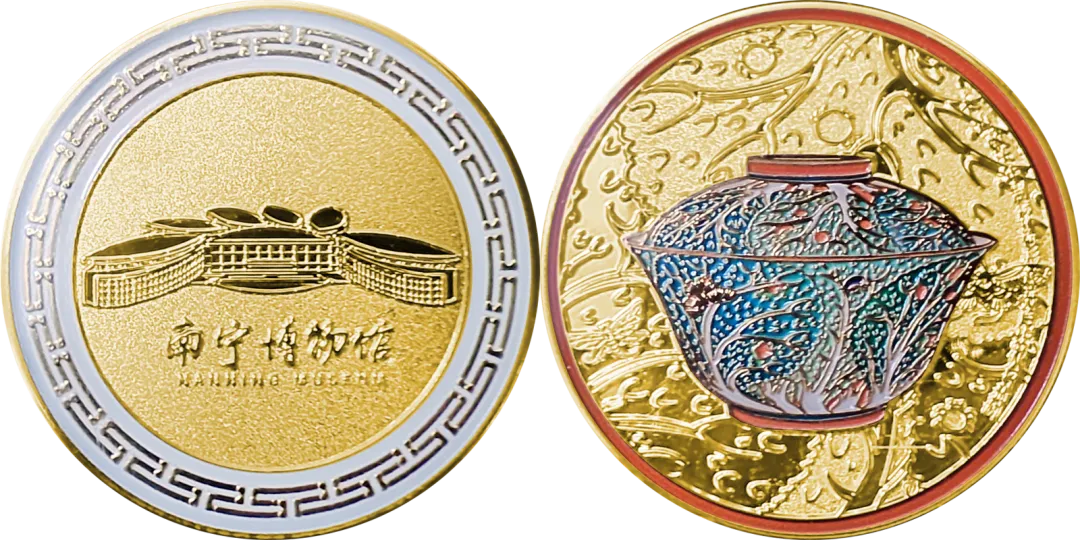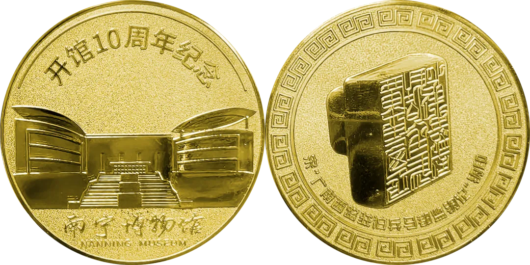 南宁博物馆共有纪念币三款,分别为驻兵马铜印、重环纹铜盘、粉彩百虫盖碗,见下图: