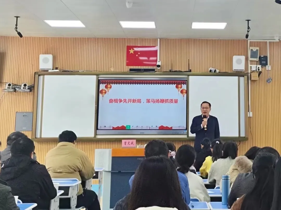 南宁市第四十七中学曾文斌老师以《奋楫争先开新局 策马扬鞭抓质量》为题,曾老师聚焦九年级学情,深入剖析教学亮点与不足,围绕中考备考规划、重难点突破、学生能力培养等核心内容分享宝贵经验,为后续九年级物理教学与备考工作指明路径。