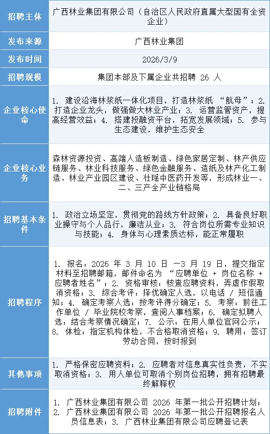 >林业国企(南宁),招26个工作人员!