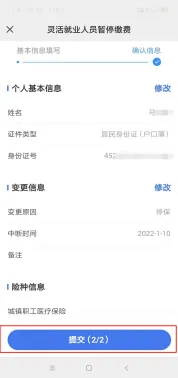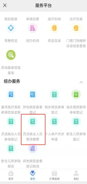 点击“医保办事”›››进行“实名认证”成功后方可办理相关业务›››点击“我要办”›››选择“灵活就业参保”›››点击“经办服务”中的“灵活就业人员暂停缴费”›››核对带*的选项,点击“下一步”›››确认信息正确后,点“提交”,即可申报完成