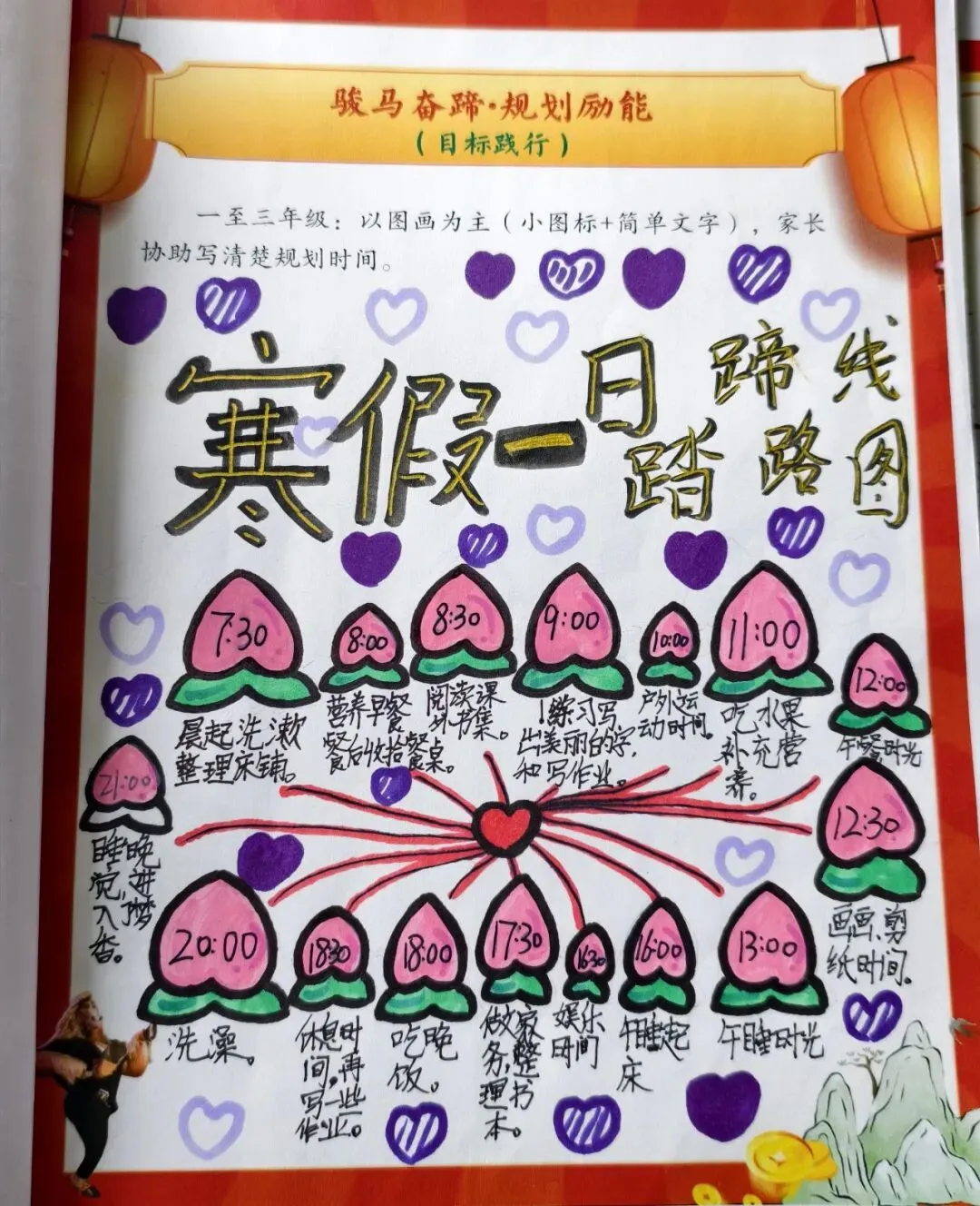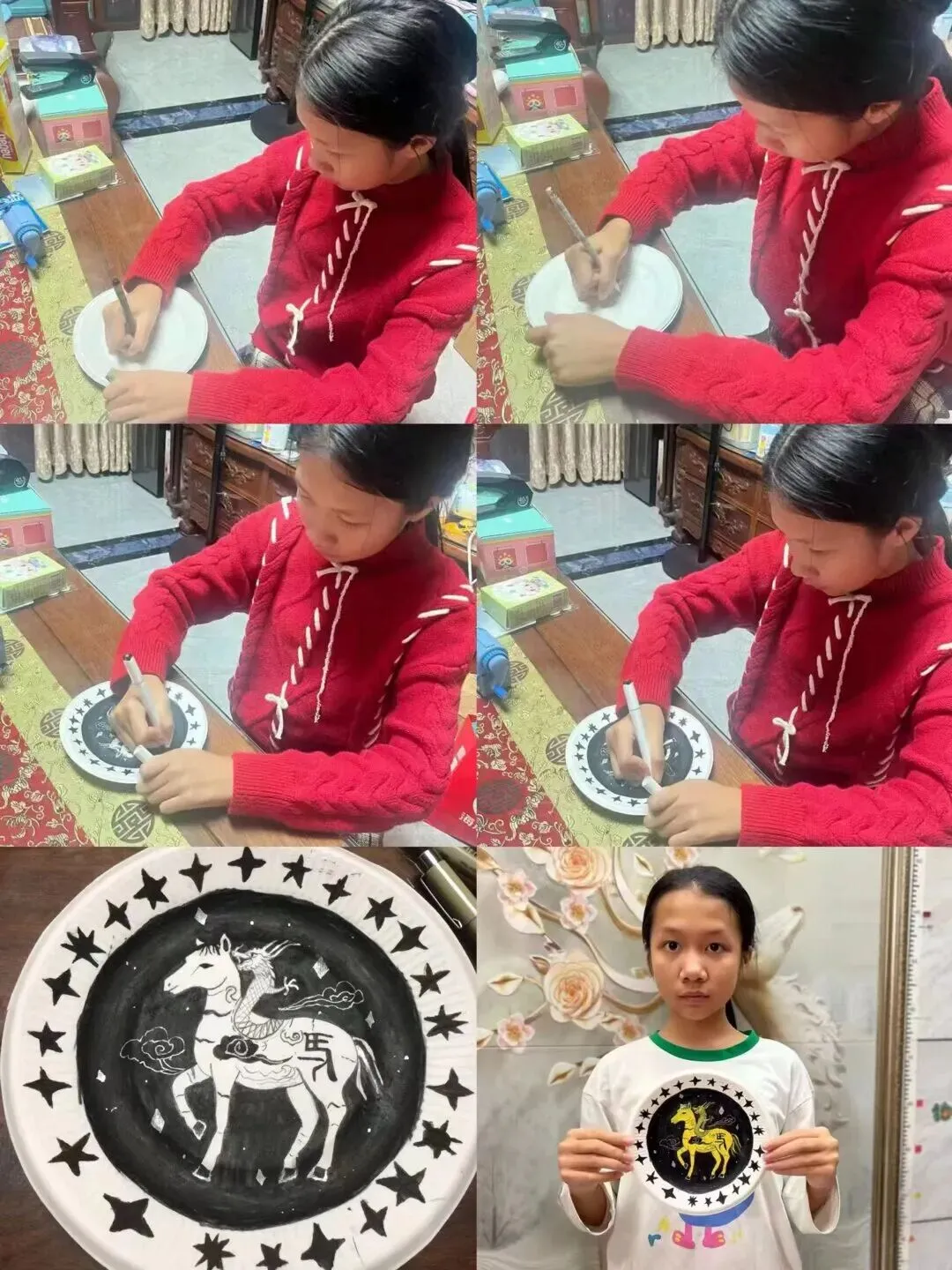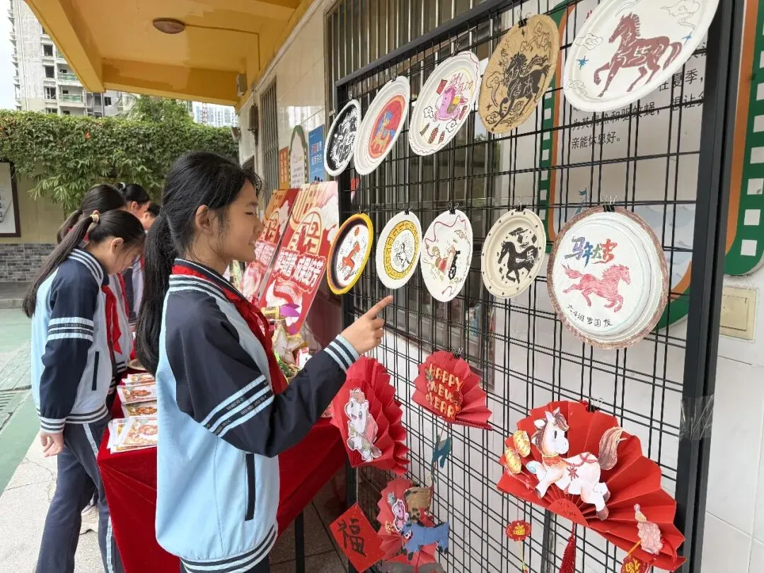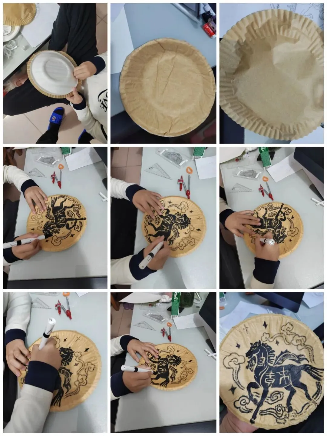 本次德育实践作业贴合学段特点分层开展,尽显因材施教的育人智慧。低年级学子以童趣践行善雅,手绘“踏蹄路线图”规划假期。彩笔绘制小马扇面、圆盘骏马,在剪纸、贴福字中感受年味。