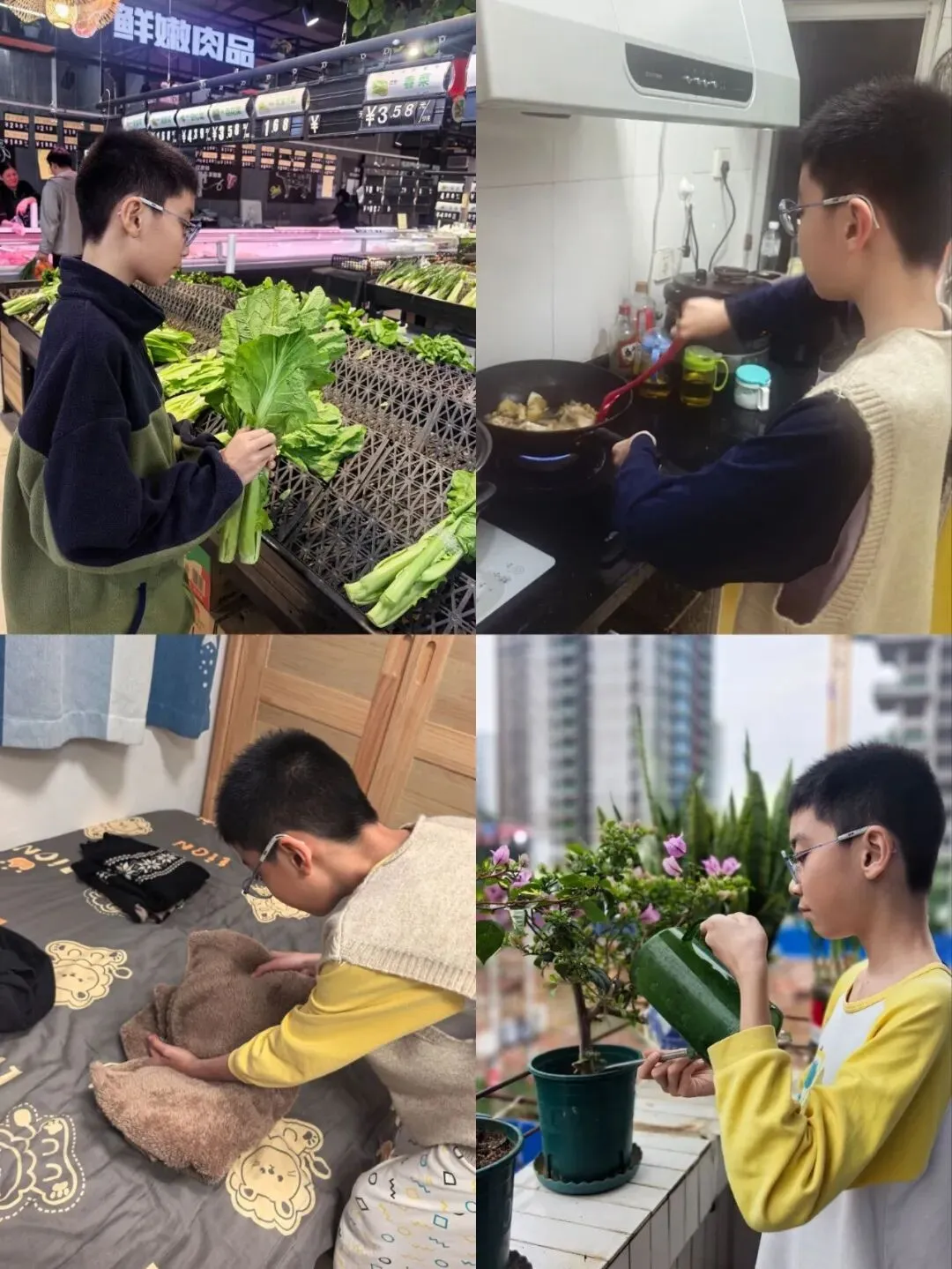 高年级学子笃行致远、彰显担当,用可回收物创作马元素手工作品;体验“家庭一日管家”;坚持篮球训练强健体魄,在责任与拼搏中厚植家国情怀。