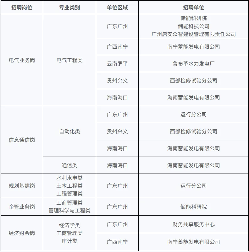 招聘单位涵盖广东、广西、云南、贵州、海南五省区。招聘岗位如下: