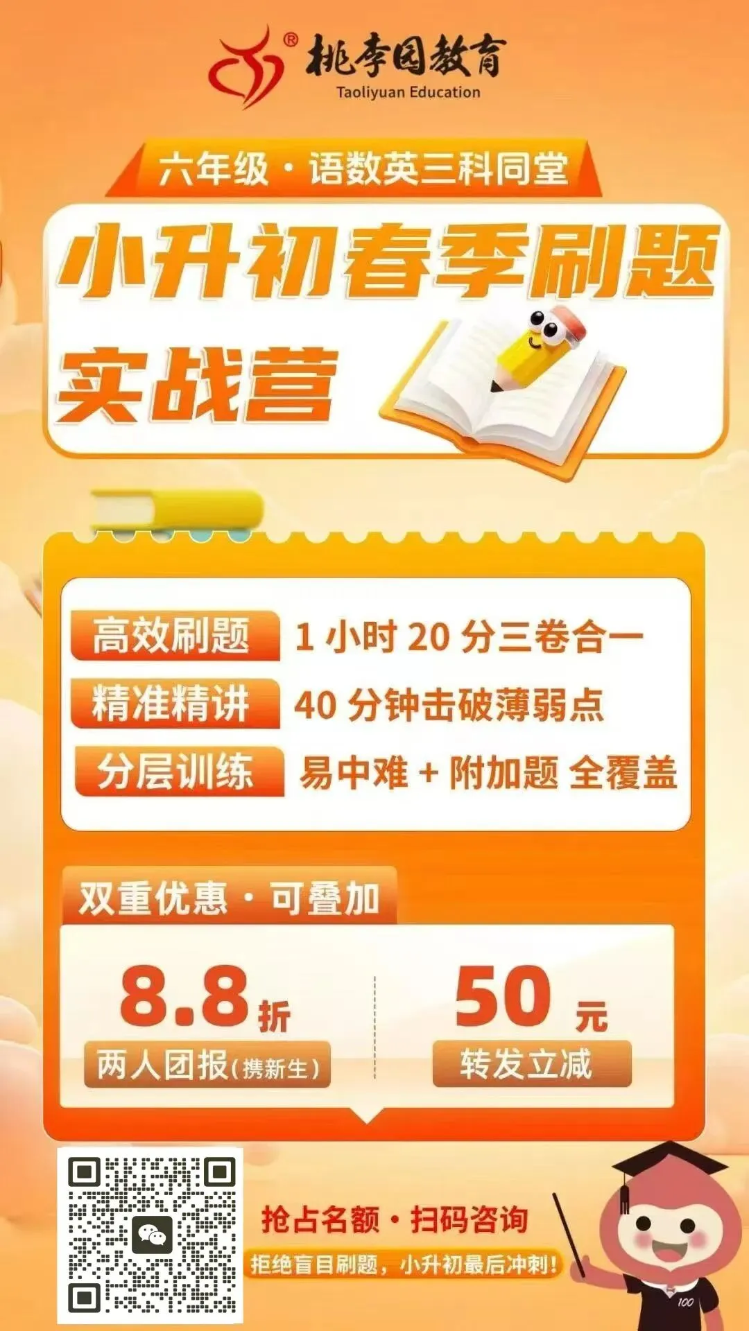 别等暑假临时抱佛脚,春季准备才能从容应战。扫码咨询抢占名额,帮孩子稳稳踏入理想的初中班级!