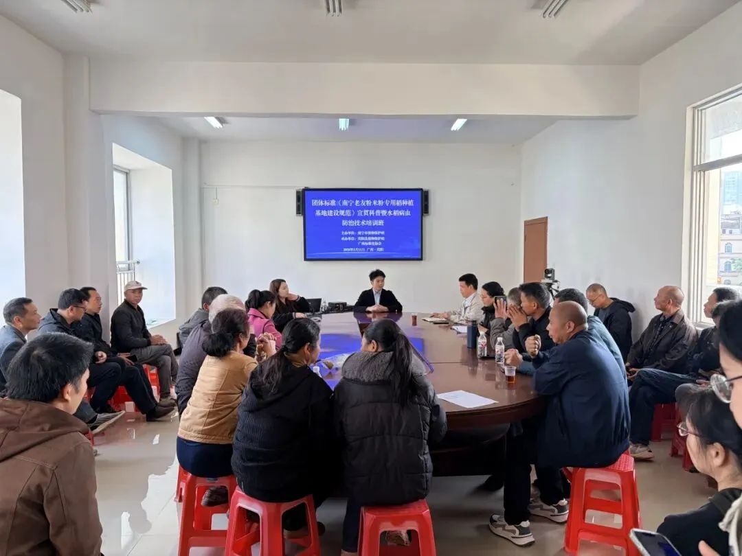 春种一粒粟,秋收万颗子。3 月 11 日,由南宁市植物保护站主办,宾阳县植保站、广西标准化协会承办的团体标准《南宁老友粉米粉专用稻种植基地建设规范》宣贯科普暨水稻病虫防治技术培训班在宾阳县举办。本次培训通过团体标准解读引领产业发展,助力南宁老友粉专用稻产业提质升级,水稻种植企业、种植大户与农技干部等250余人线上线下参加培训。