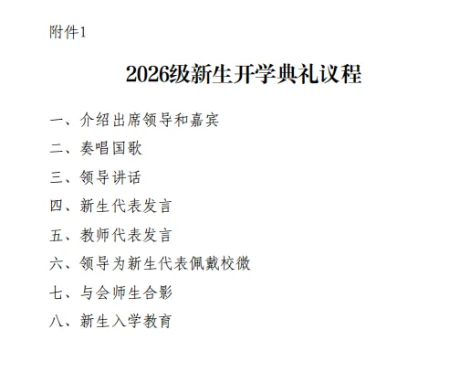 学校定于2026年3月21日上午举行高等学历继续教育2026级新生开学典礼,现将具体通知和附表发给大家,请按通知要求传达新生,并于3月17日前报送来学校现场参加典礼的新生信息,谢谢!