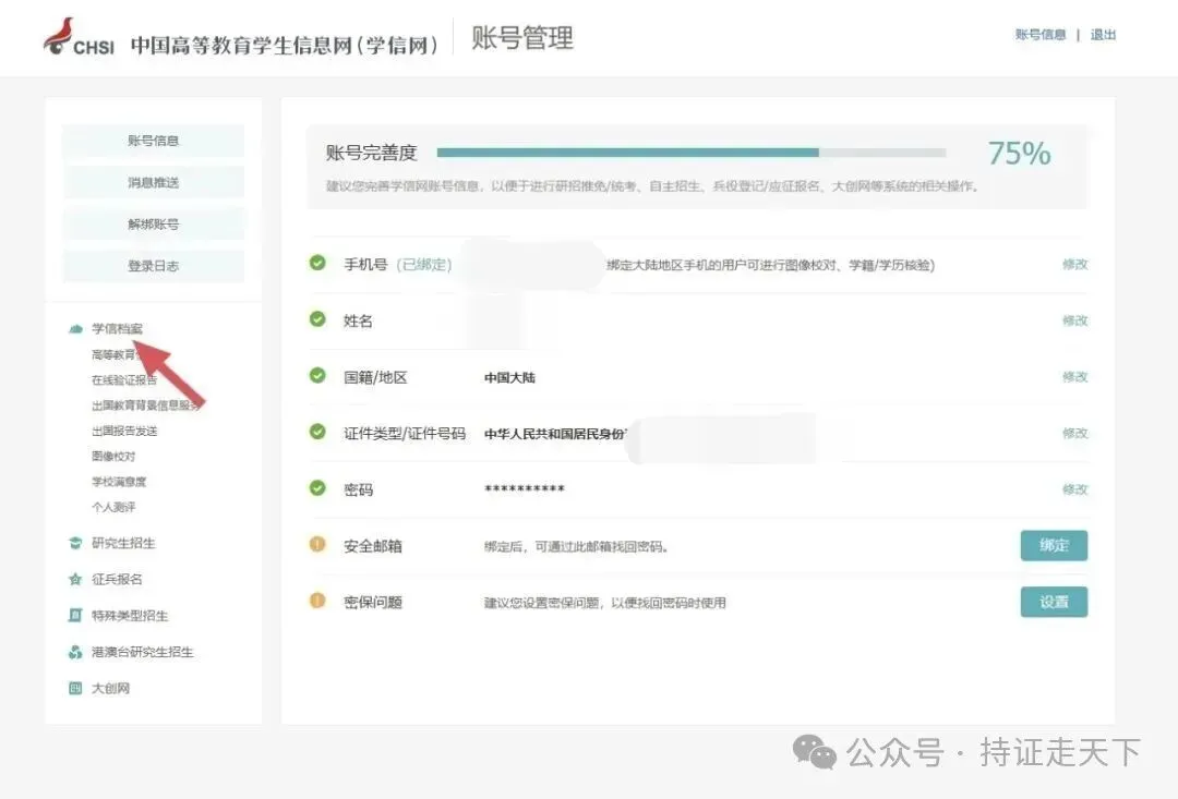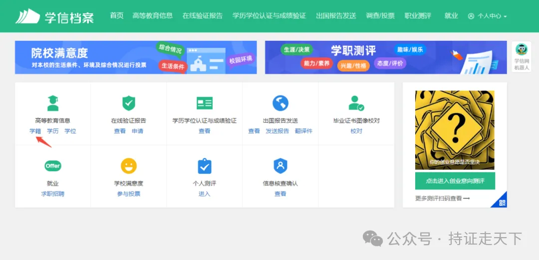 (3)点击学信档案,点击学籍→进入页面即可查看注册的学籍信息。(登录以后可以先完善个人信息)