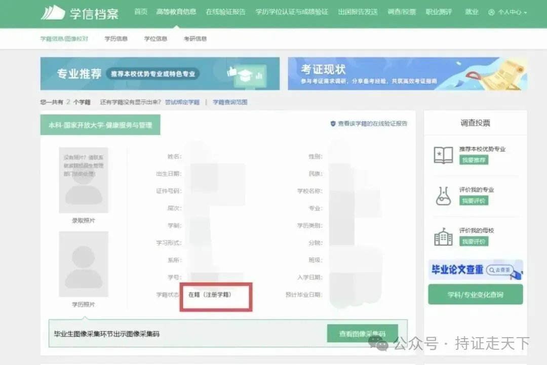 (4)查看注册的学籍信息,学籍状态为: 在籍(注册学籍),即说明学籍已注册完成。