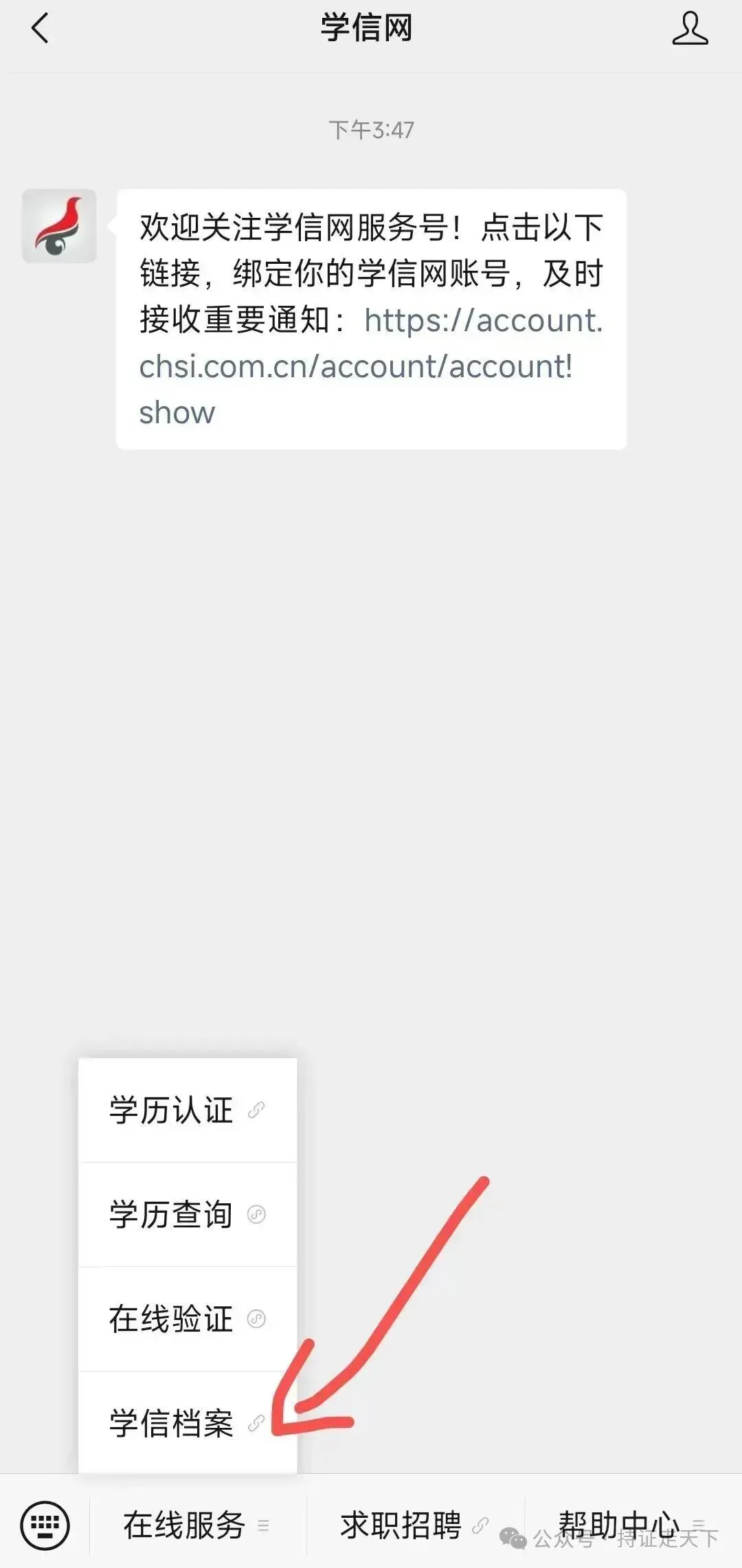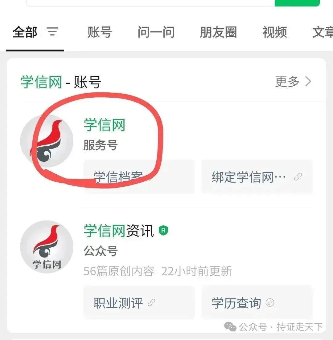 (1)打开微信,进入搜索页面搜索学信网公众号并进入。