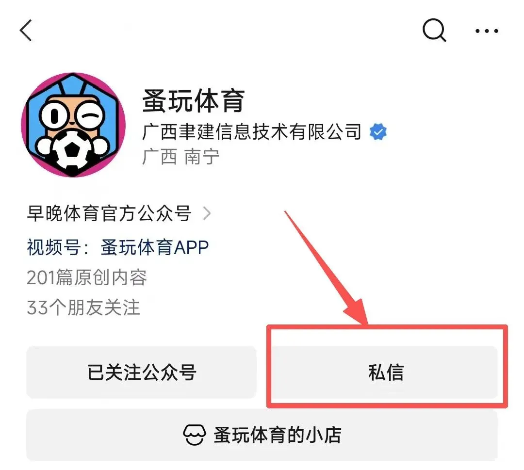 1.打开微信,关注下方「蚤玩体育」公众号名片,点击「私信」