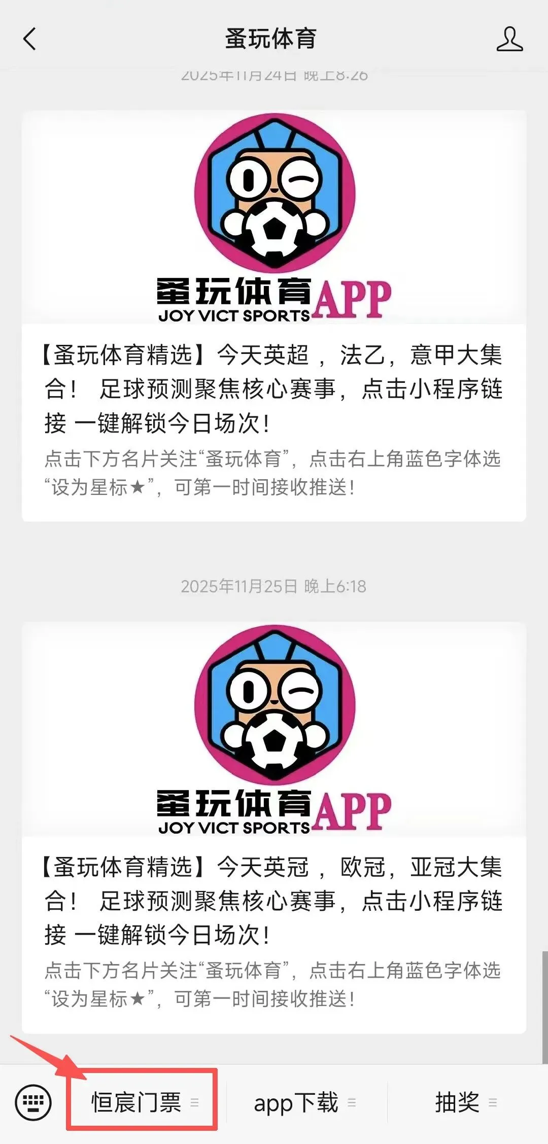 3. 进入公众号菜单栏,找到「恒宸门票」入口,点击进入购票页面