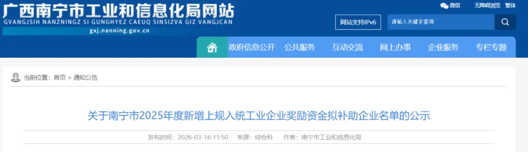 为贯彻落实党中央、自治区、南宁市关于经济工作的决策部署,进一步巩固和增强工业经济稳中向好的态势,根据《南宁市人民政府关于印发南宁市推进工业振兴若干政策(修订)的通知》(南府规〔2023〕14号)“鼓励企业上规入统”政策措施,经企业申报,各县(市、区)、开发区工信、财政部门审核推荐,南宁市工信局联合市直有关部门审查后,拟认定宾阳县金瑞炭业有限公司等145家企业符合2025年度新增上规入统工业企业奖励条件,根据工作程序,现将拟奖励企业名单予以公示。