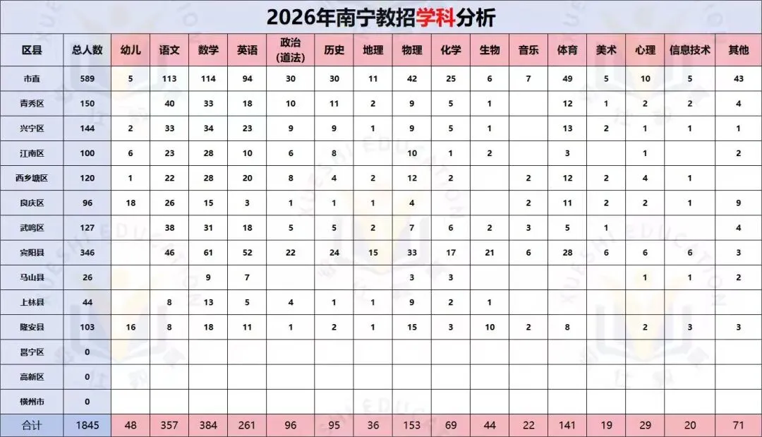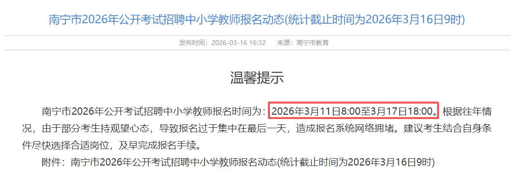 出啦!南宁市2026年公开考试招聘中小学教师1845人!3月11日开始报名!