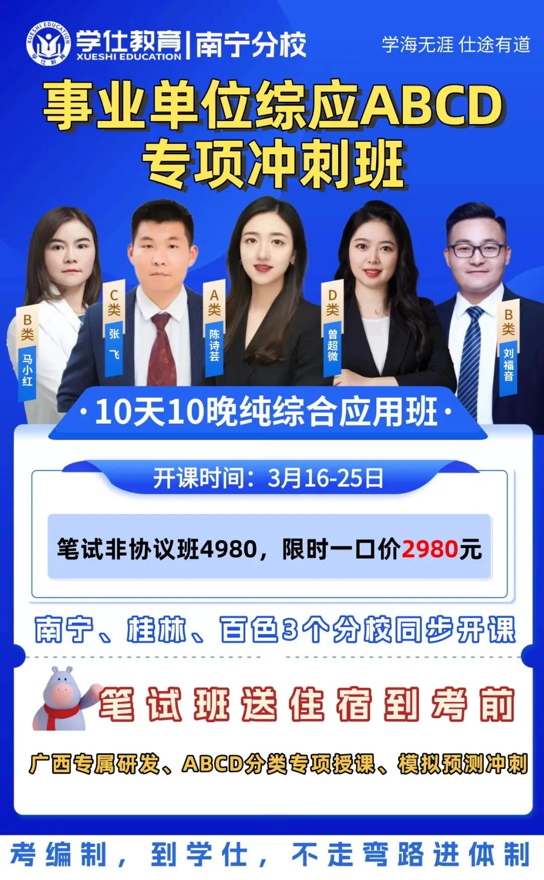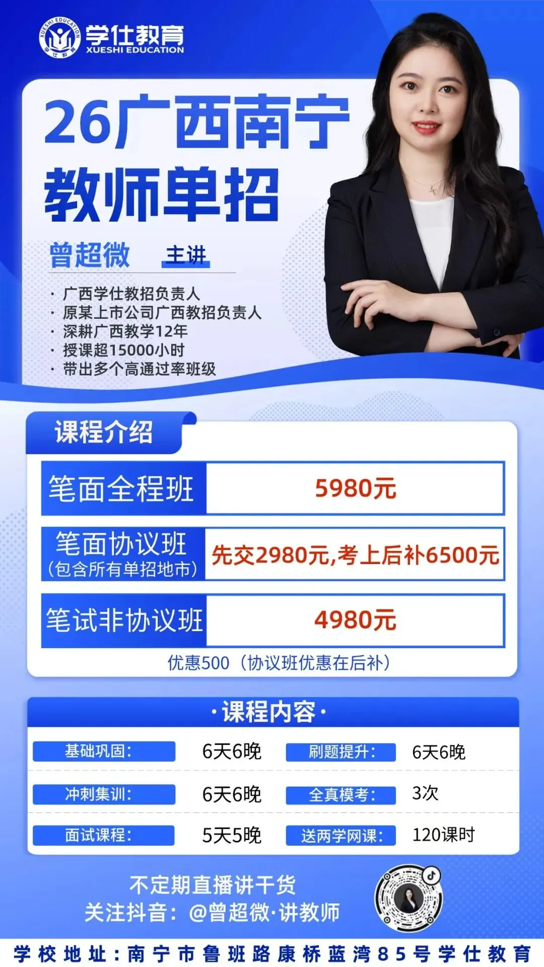 关注“广西学仕教育”公众号,回复“南宁教招”