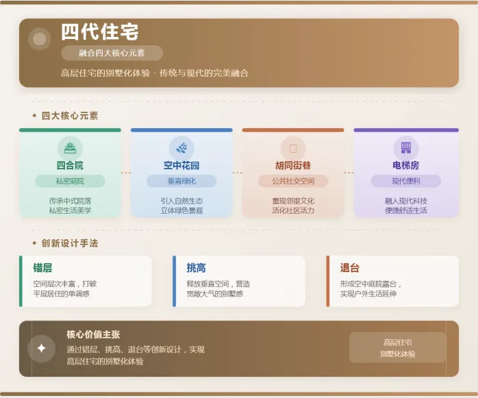 从第一代茅草房到第二代功能商品房,再到第三代改善型电梯房,住宅的进化始终围绕“住得更好”展开。而四代住宅,则把目标升级为“住得健康、有归属感”。