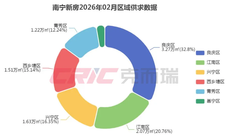 从2026年2月的数据看,良庆区供应520套,成交269套;江南区成交197套;兴宁区成交153套;西乡塘区成交146套;青秀区虽然供应数据缺失,但成交均价高达15445元/㎡,显示其高端定位。