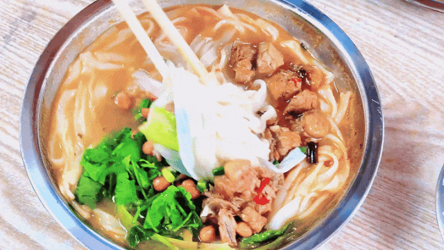 喝过汤后胃口完全打开,再把粉和肉混杂起来猛嗦几口,在汤头的调节下,肉的香嫩和米粉的顺滑完美相融,简单咀嚼后下肚,余香还在口中久久不散,直到接上下一口,就这样一直嗦一直爽!