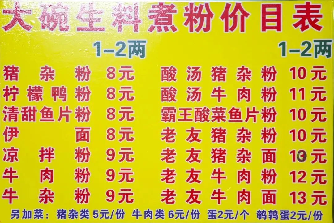 猪杂粉、柠檬鸭粉、清甜鱼片粉、伊面