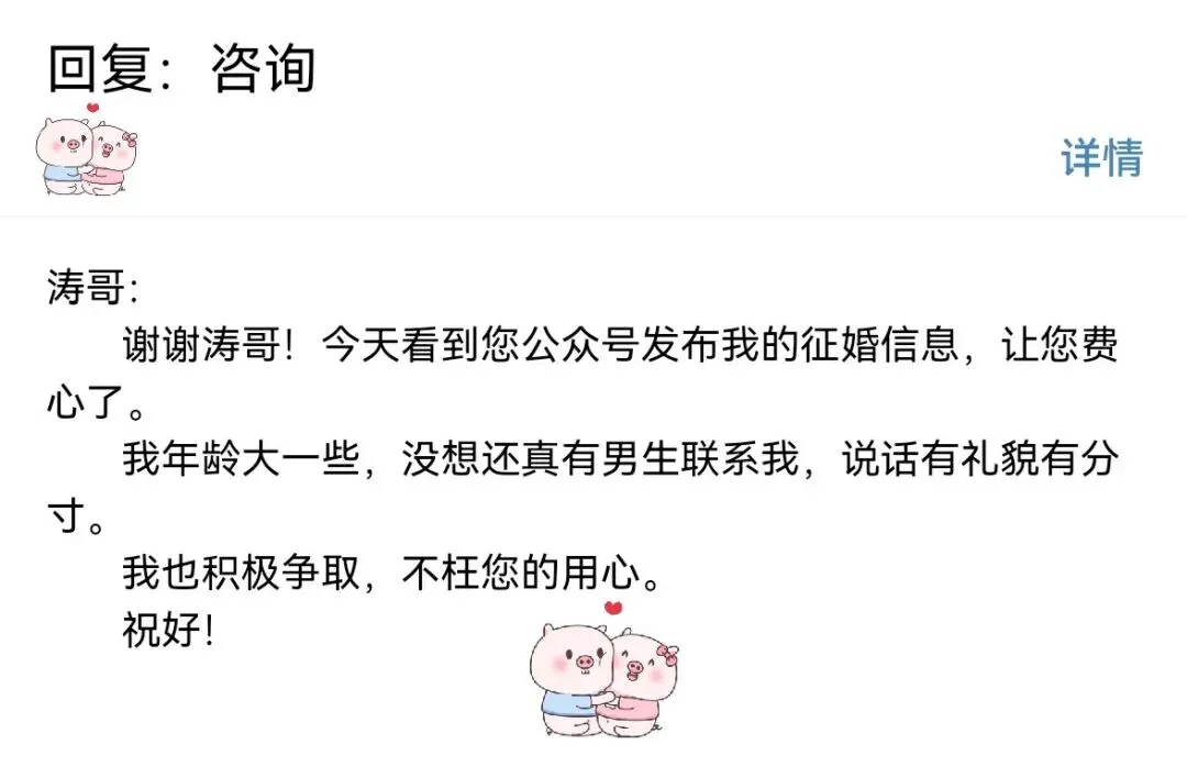 声明:此信息由征婚者本人或其家人提供,涛哥只是提供一个制造缘分祝愿幸福的公益平台,具体情况还请双方在交往中予以了解决定。
