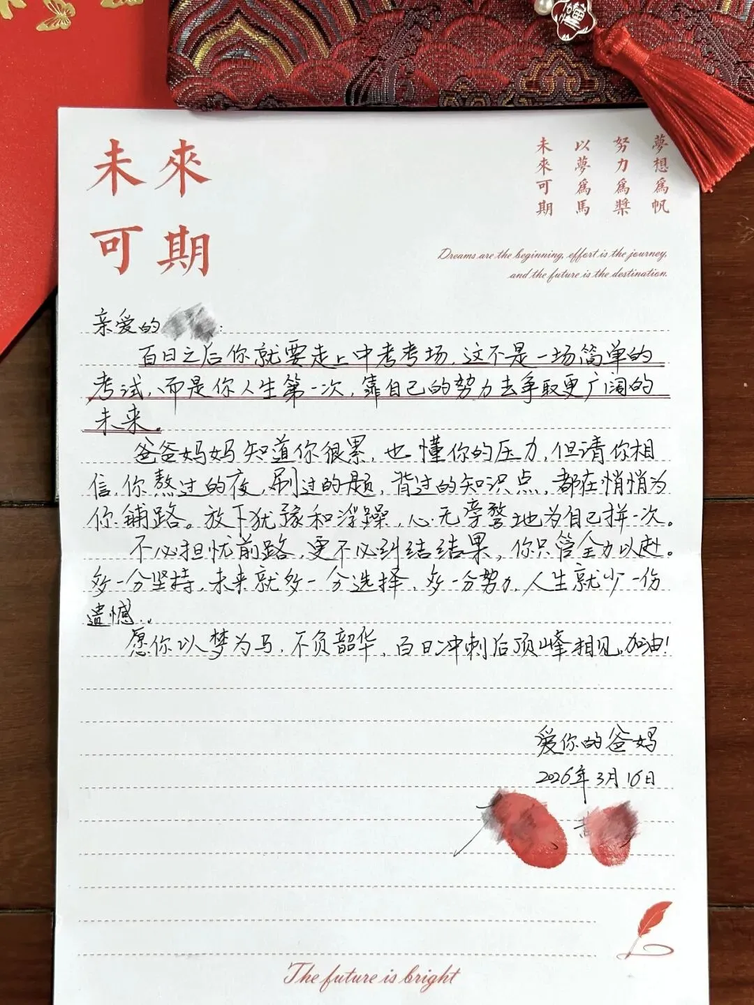 除了暖心伴手礼,家委们还为 2302 班的少年们准备了一场充满仪式感的百日誓师抽红包活动,由唐彪森妈妈主持,唐瀚林和李沐羲爸爸协助。
