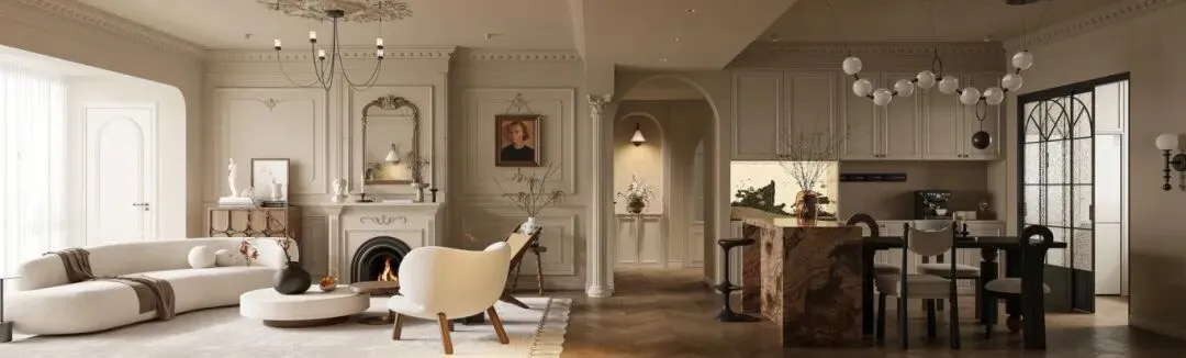 这套家的核心设计逻辑,是去繁从简的法式复兴,既保留了法式风格的标志性基因,又用现代审美做了减法,同时融入美式复古的沉稳,让空间既有仪式感,又充满生活温度。