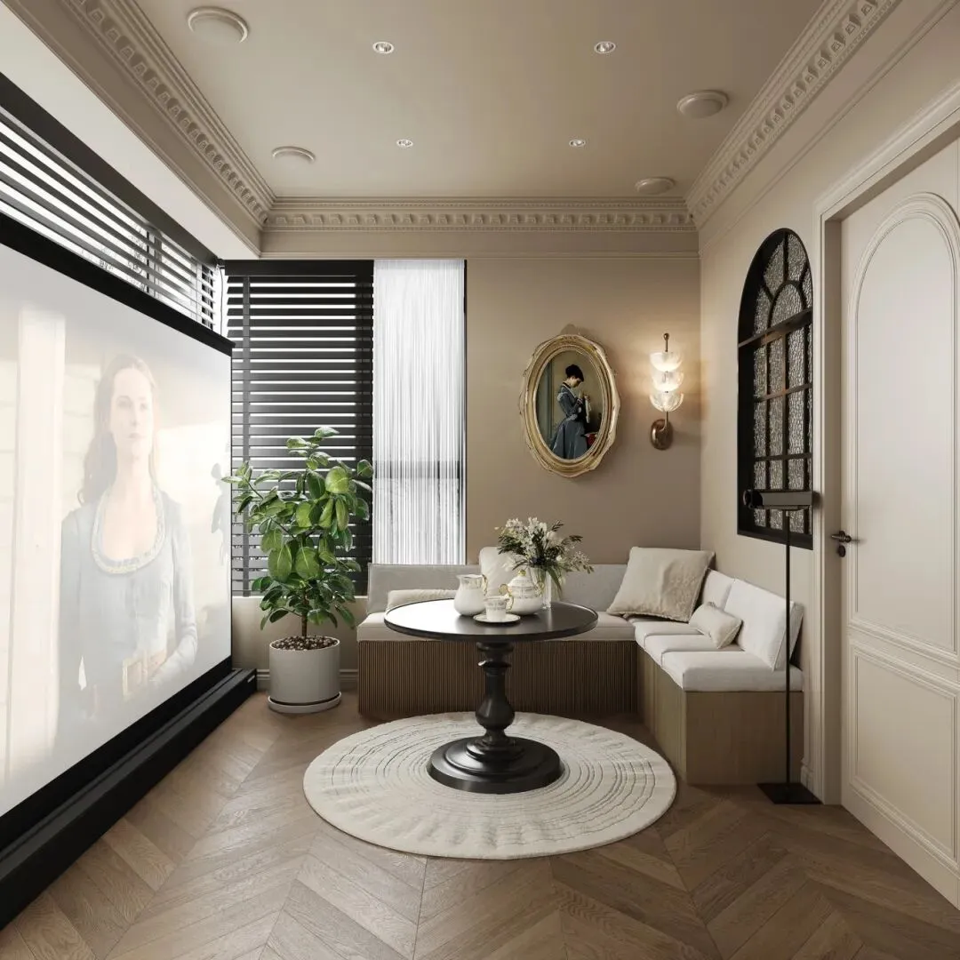 灯光别太亮:法式风格讲究暖光氛围,建议选用 3000K-3500K 的暖白光,避免冷白光破坏温柔感。