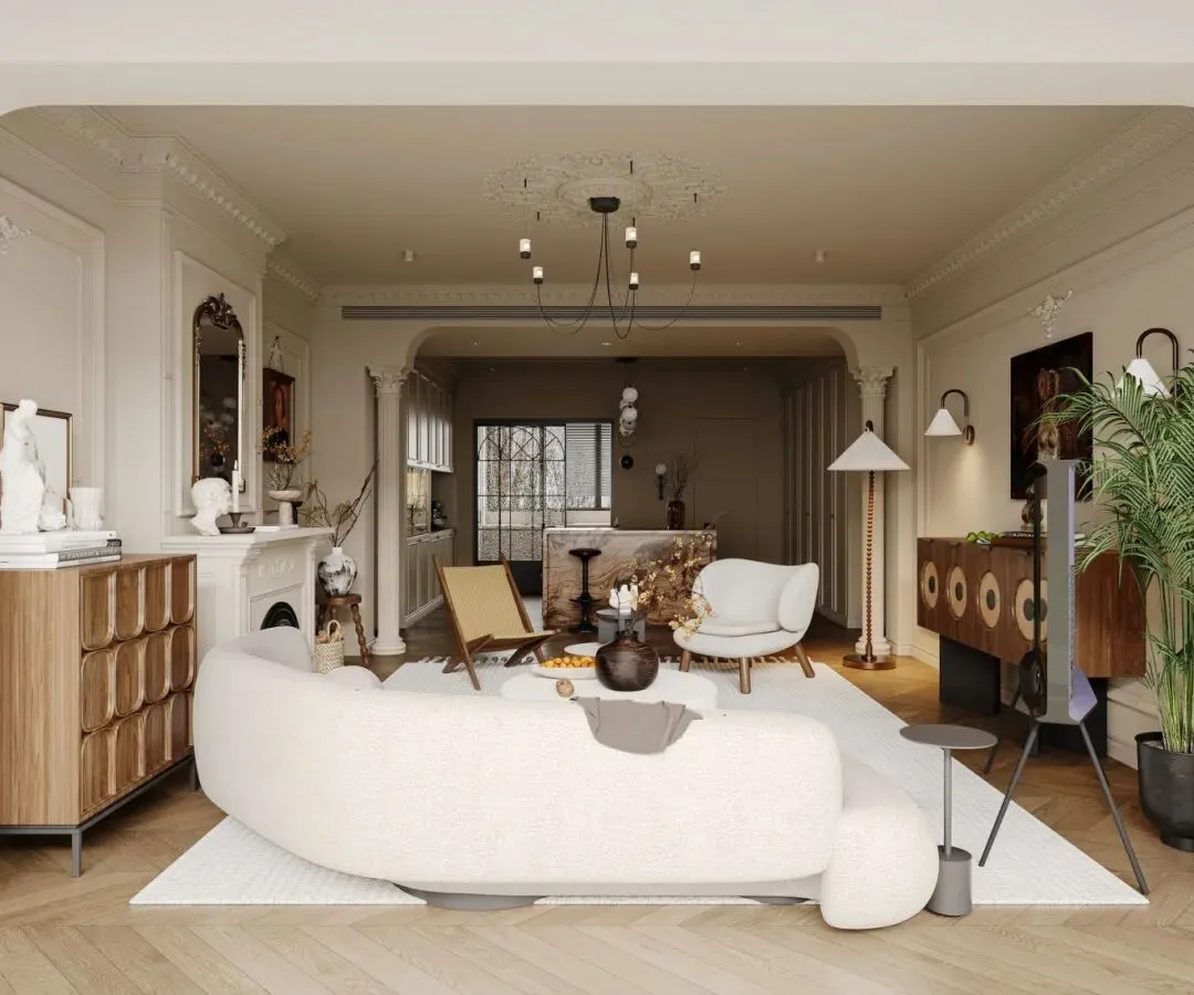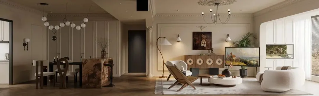 当奶油风的温柔遇上法式的优雅,再揉进美式复古的厚重质感,这套家便成了无数人心中的理想居住范本。没有繁复的雕花,也没有浓烈的色彩冲击,中宅首席设计师利用克制的线条、温润的材质与细腻的光影,把 18 世纪的法式浪漫,搬进了当代人的日常起居。
