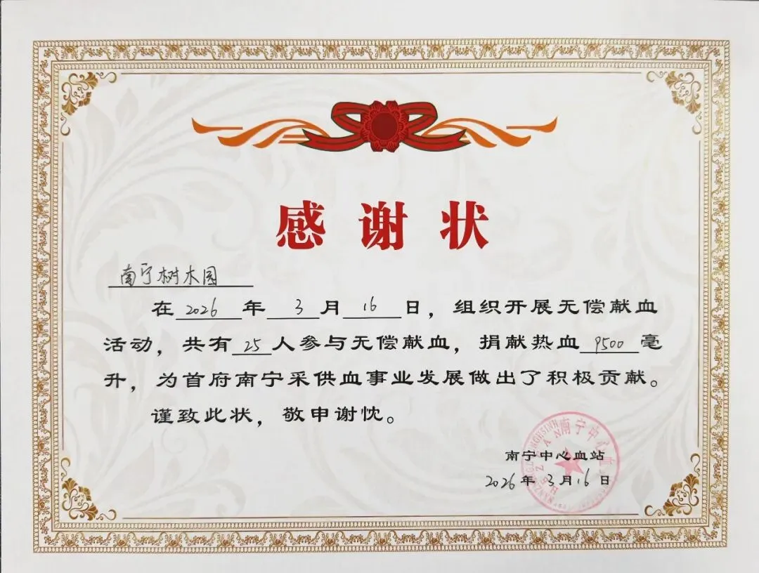 此次无偿献血志愿服务活动,是南宁树木园深化精神文明建设、践行社会责任的生动实践。下一步,南宁树木园将继续弘扬雷锋精神和志愿服务精神,常态化开展各类公益志愿服务活动,引导干部职工以实际行动奉献爱心、传递温暖,持续擦亮全国文明单位“金字招牌”。