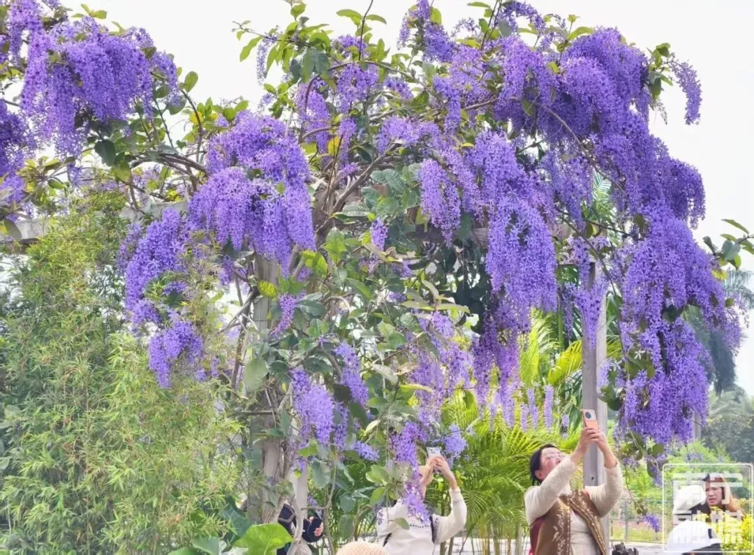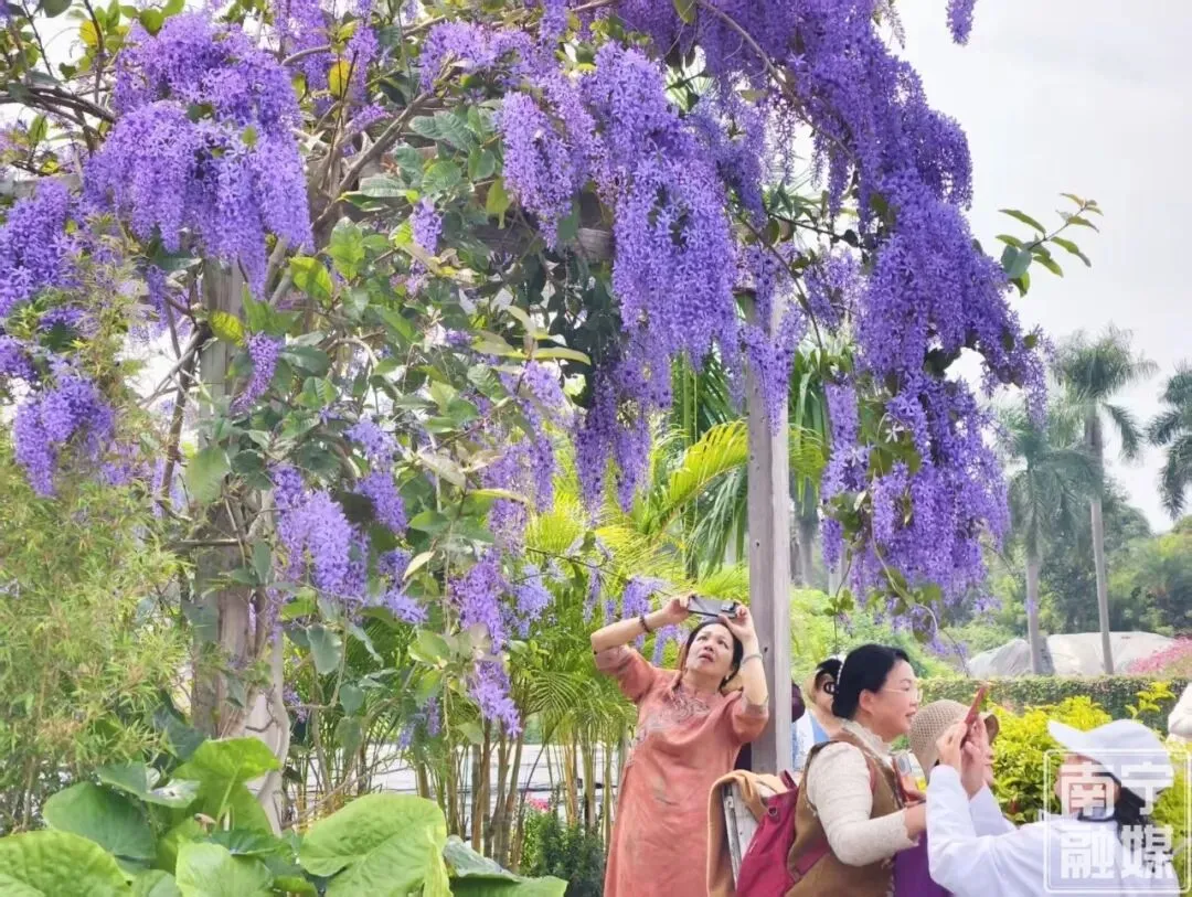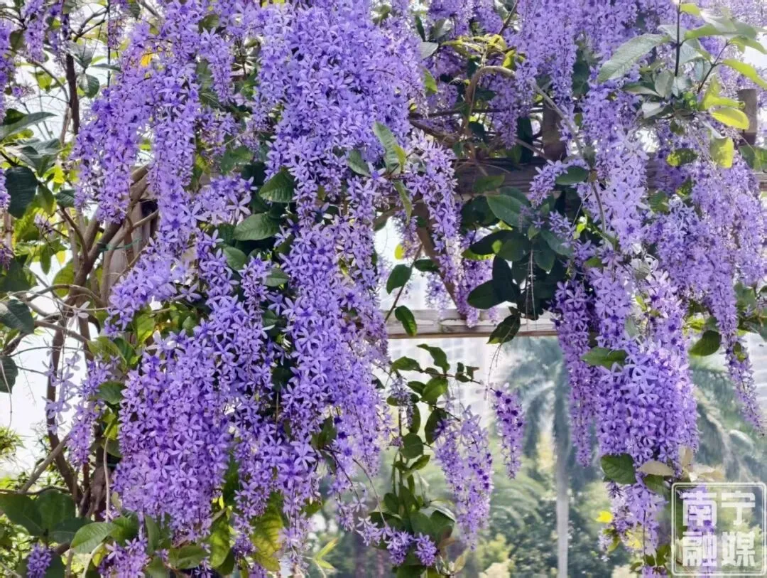 草长莺飞,春色如诗,南宁市花卉公园的蓝花藤火了,吸引了很多人去打卡。走进公园花卉科普展示中心及北门月季园,只见在廊亭之上斜卧着一大丛盘根错节的藤本植物,沿着藤蔓之上,长满了密密匝匝的蓝紫色花朵,垂坠成梦幻紫色瀑布,花朵艳丽,风姿绰约,在阳光照耀下更美丽,无需滤镜,随手一拍就是春日大片。
