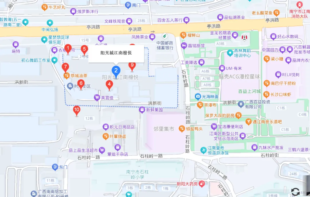 直线3公里范围内教育资源密集,涵盖幼儿园、小学、中学全学段。小区自带9班幼儿园,南侧紧邻石柱岭小学,步行可达。周边还有南宁市菠萝岭小学、南宁市平西小学等优质小学,以及南宁十中、南宁市第二十一中学等中学,满足孩子从启蒙到高中的教育需求。