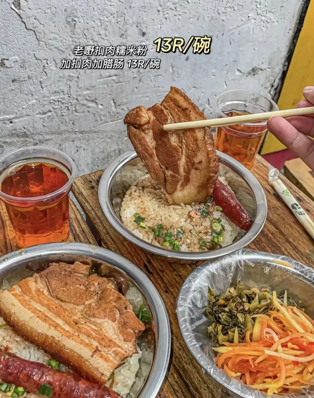 扣肉肥而不腻,糯米吸满肉汁,配酸菜一口入魂,早餐来一份顶饱一上午。