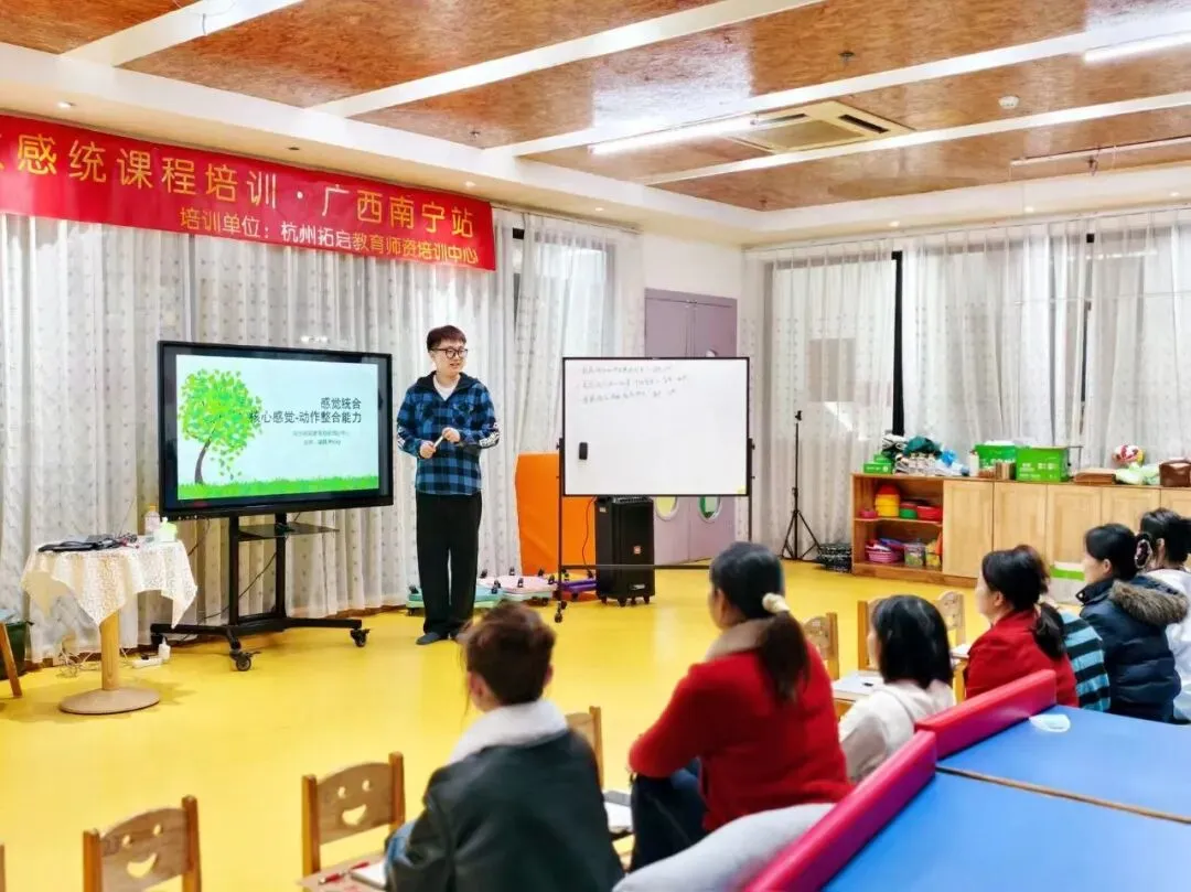 2026年1月,拓启教育师训中心收到广西壮族自治区南宁市三原色教育集团的邀请,为该集团旗下管理的幼儿园引入本品牌的核心王牌课程——《拓启医教感统课程》。课程培训为期四天四夜,自1月24日起至27日结束,总计32学时,由本公司培训总监凌棋(Ricky)博士担任主讲。
