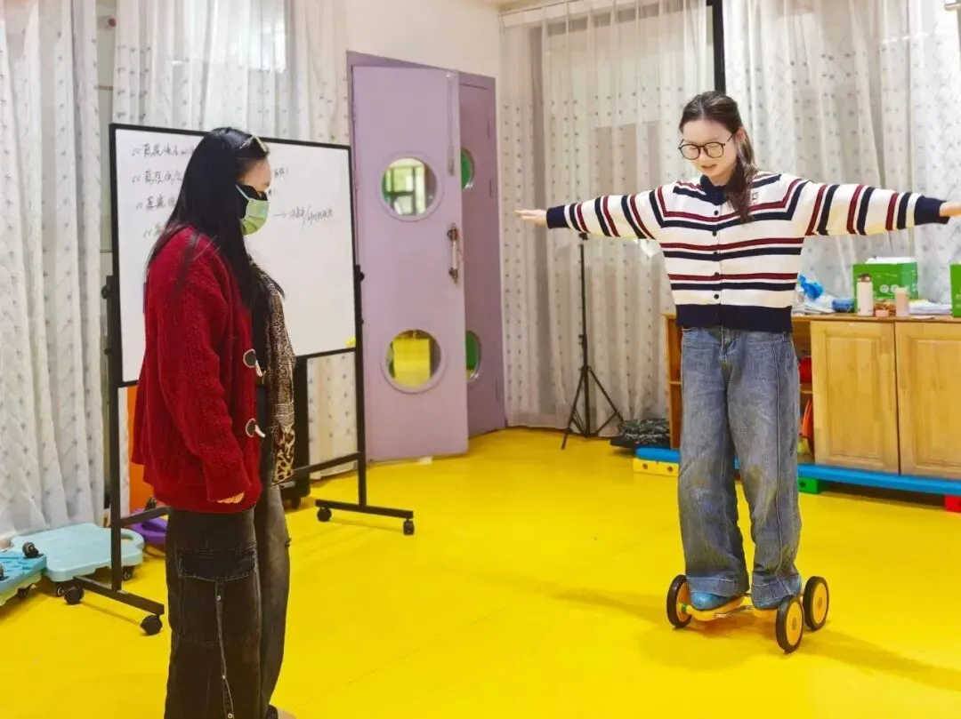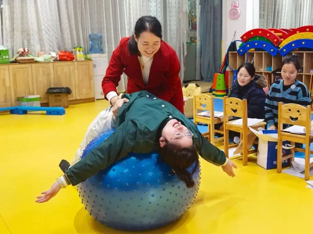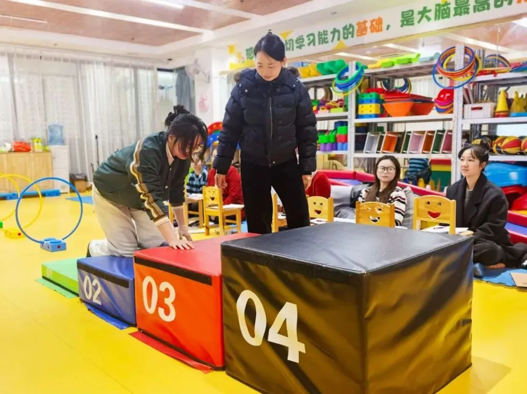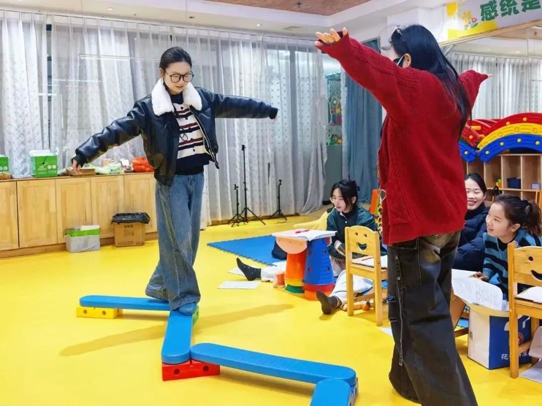 随着课程的推进,学员们逐步掌握了感觉统合的核心理论和实践技巧。在接下来的几日里,凌老师通过分组练习和案例分析,进一步巩固了学员的知识基础。每个小组都积极投身于模拟训练,尝试设计个性化的感统训练方案,并在课堂上进行展示与交流。这种互动式学习方式不仅增强了学员的参与感,也让他们能够从彼此的经验中获取灵感。此外,课程还专门安排了实操环节,学员在专业设备的辅助下,亲身体验感统训练的具体操作流程,为其今后的教学实践奠定了坚实基础。培训期间,学员学习热情高涨,课后也不乏热烈的讨论与分享,大家均表示,此次课程不仅提升了他们的专业能力,也为其职业发展注入了新的动力。