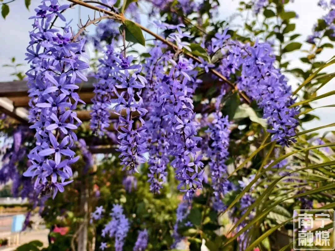 草长莺飞,春色如诗,南宁市花卉公园的蓝花藤火了,吸引了很多人去打卡。走进公园花卉科普展示中心及北门月季园,只见在廊亭之上斜卧着一大丛盘根错节的藤本植物,沿着藤蔓之上,长满了密密匝匝的蓝紫色花朵,垂坠成梦幻紫色瀑布,花朵艳丽,风姿绰约,在阳光照耀下更美丽,无需滤镜,随手一拍就是春日大片。