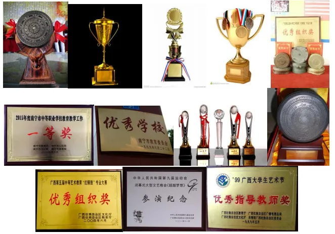 深耕学科建设,探索教学技术与课程融合的创新模式,斩获多项教育教学大奖,如 “广西中等艺术教育‘红铜鼓’专业大赛优秀组织奖”“南宁市中等职业学校教育教学工作一等奖”“中华人民共和国第九届运动会闭幕式大型文艺晚会参演纪念” 等,教师团队也多次获评 “优秀指导教师奖”,办学成果获行业与社会广泛认可。