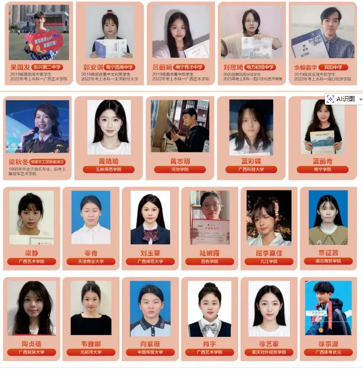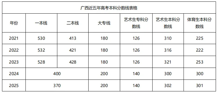 培养目标为在完成普通高中学科基础上,培养德智体美劳全面发展、兼具创新精神与实践能力的艺术高等院校后备人才,通过 “艺术统考 + 高考” 模式考取全国各大高校(艺术生高考录取分数更低),并附广西近五年高考本科分数线表格。