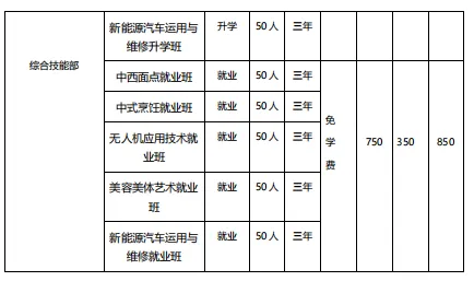 1.中西式面点班:学习中式传统面点与西方烘焙技艺;就业方向为星级酒店、连锁烘焙企业等。2.中式烹饪班:训练刀工、勺工等,学习八大菜系经典菜品;就业方向为星级酒店、连锁餐饮企业,可从事厨师、餐饮管理等。3.无人机应用技术班:掌握无人机飞行、装配、维护等技能;就业方向为航拍、植保、巡检等。4.美容美体艺术:掌握美容美体、美妆美甲、中医养生等技能;就业方向为美容保健、化妆美甲等。5.新能源汽车运用与维修:掌握新能源汽车检测、维修、保养等技能;就业方向为新能源汽车制造、销售与服务企业等。招生专业收费相关