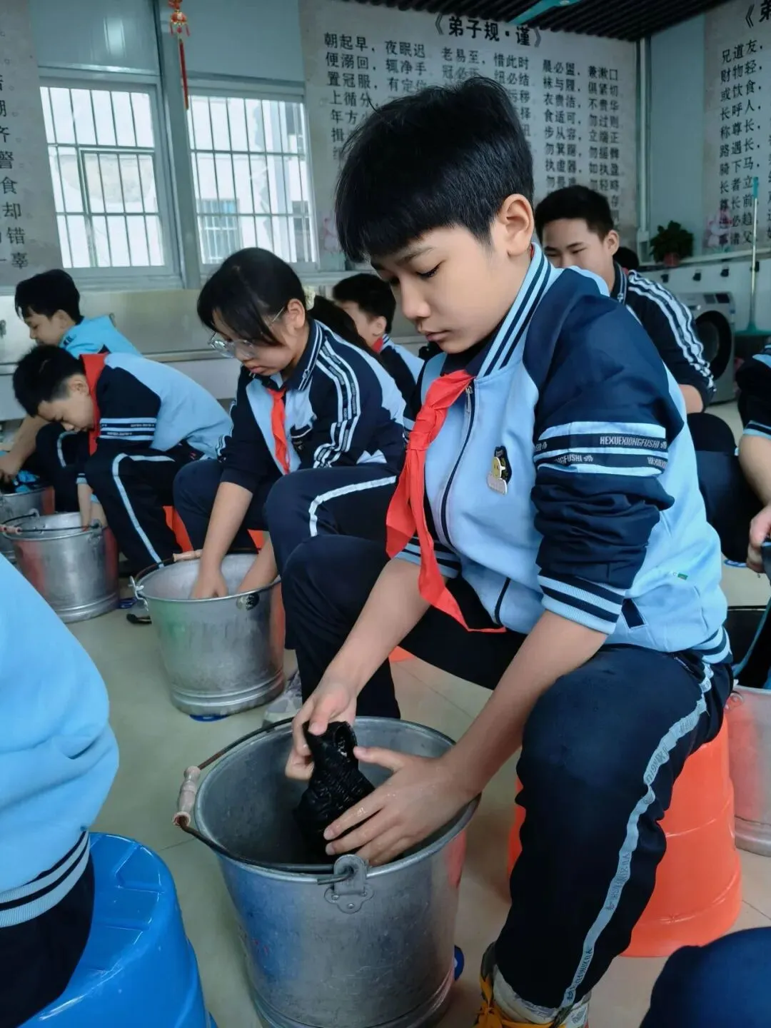 从昔日的手足无措、笨手笨脚,到如今的从容不迫、利落娴熟,劳动场上的每一处细节,都藏着同学们的蜕变与成长。大家分工明确、默契协作,采购时精打细算、货比三家;洗菜时认真分拣、仔细冲洗;切菜时手法娴熟、整齐均匀;煮饭、炒菜时火候得当、有条不紊;浣洗衣物时,搓揉、漂洗、晾晒,每一个动作都透着认真与专注。昔日需要老师手把手指导的小不点,如今已然长成了能独当一面、勤劳能干的小少年,用双手书写着成长的答卷。