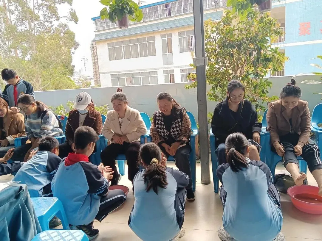 活动温情时刻,“孝亲敬老”环节暖意融融。同学们端来温热的洗脚水,为到场父母细细洗脚,触摸着父母脚下的老茧,诉说心中的感恩;随后,亲手喂父母喝下自己熬制的汤,用简单而真挚的动作,传递对父母的爱意,也让父母真切见证了自己的蜕变与成长。