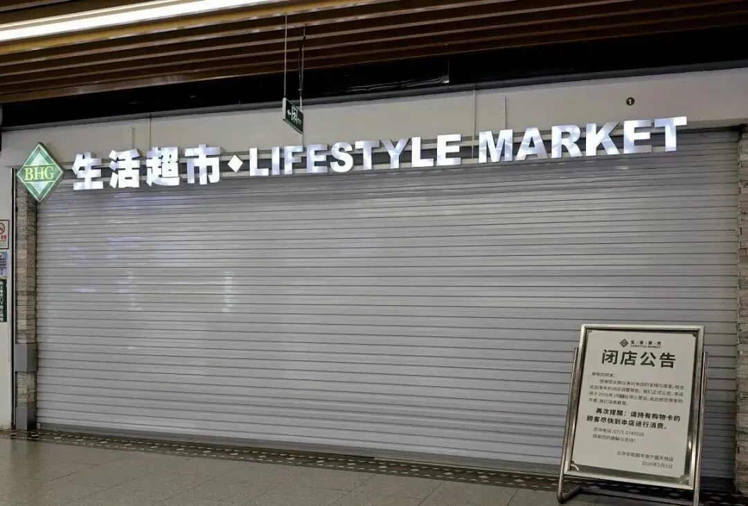 立于超市入口处的闭店公告。