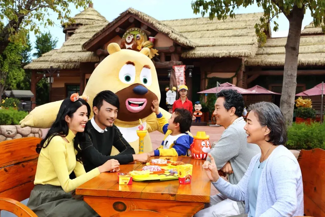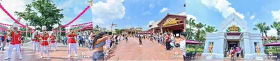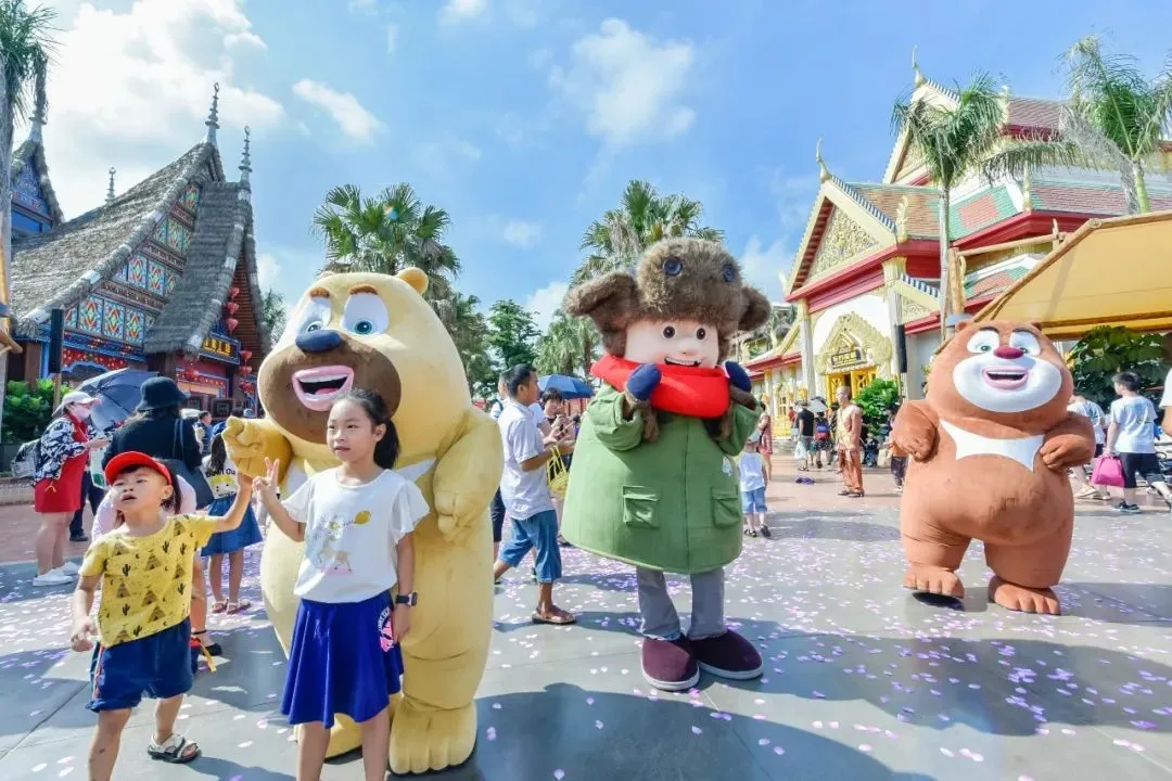 入园第一站,映入眼帘的便是拥有十国风情的东南亚风情街,在这里小编推荐玩玩看看拍拍30分钟左右,开园后入园入口处有短暂的迎宾互动,将有十国风情的小哥哥和小姐姐以及熊出没明星家族等待着您。